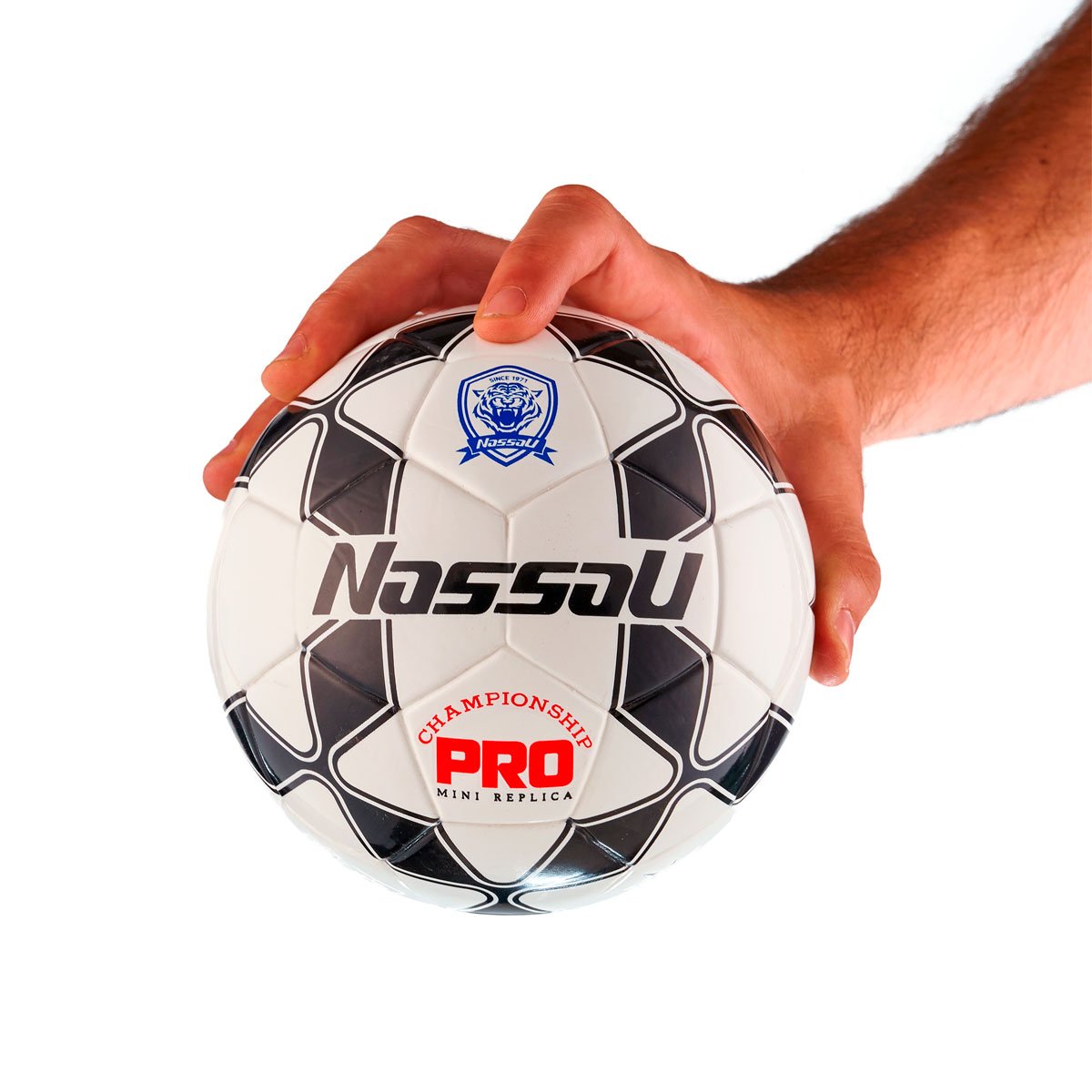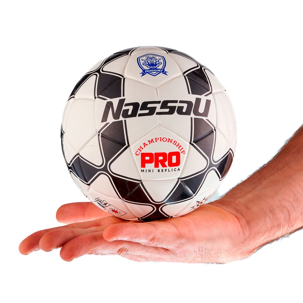 La Mini Réplica CHAMPIONSHIP PRO Nº0 de Nassau es una pelota de fútbol de entrenamiento o colección, ideal para juegos en espacios reducidos o para los más pequeños. Con un tamaño Nº0, es más pequeña que las pelotas estándar, lo que la hace perfecta para mejorar habilidades técnicas. Fabricada en TPU (Poliuretano Termoplástico), es resistente y duradera, ofreciendo excelente respuesta al contacto y buena retención de forma. Su diseño es unréplica a escala de pelotas profesionales, con detalles visuales de alta gama. Además, incorpora la tecnología airless, lo que elimina la necesidad de inflarla, haciendo que sea aún más práctica y duradera.