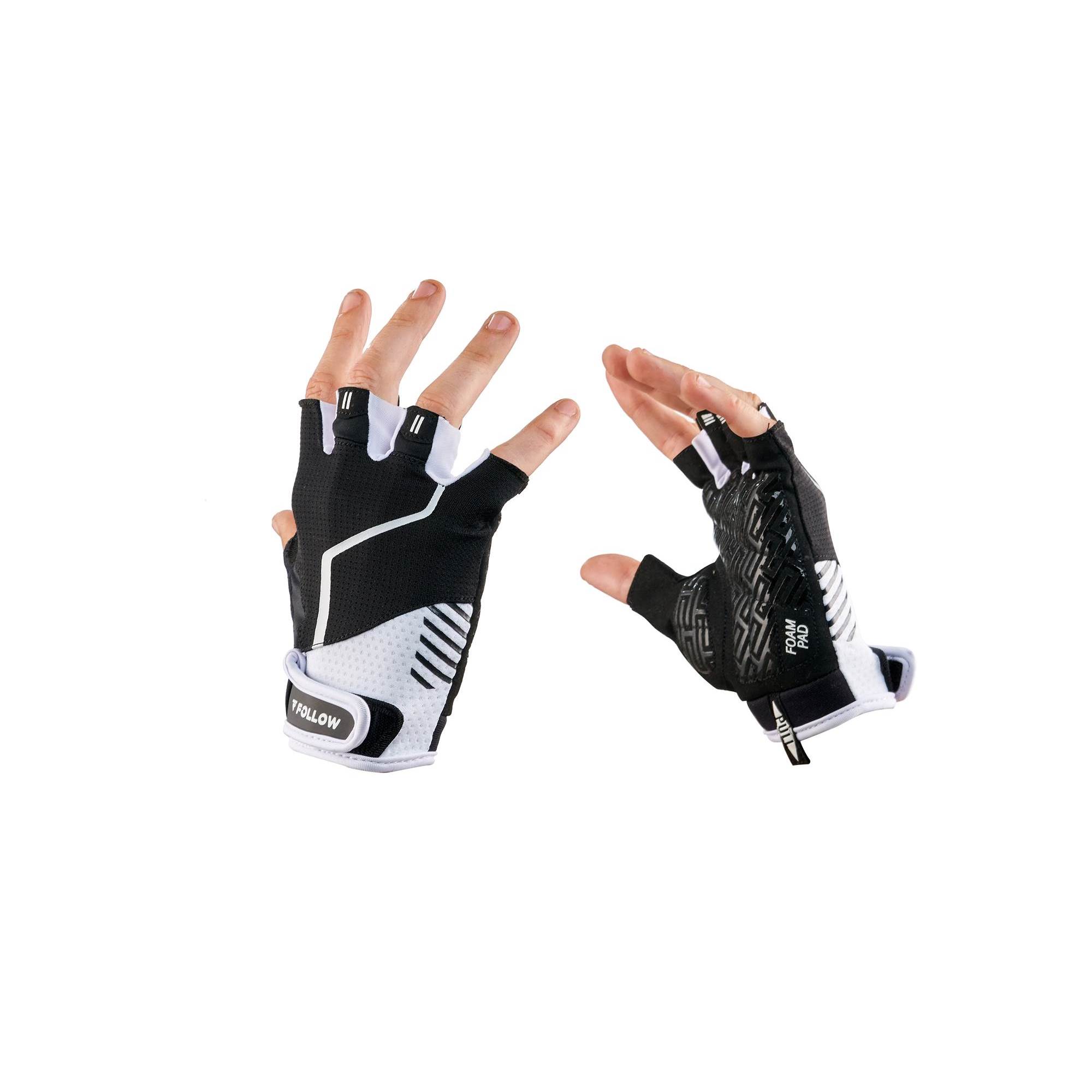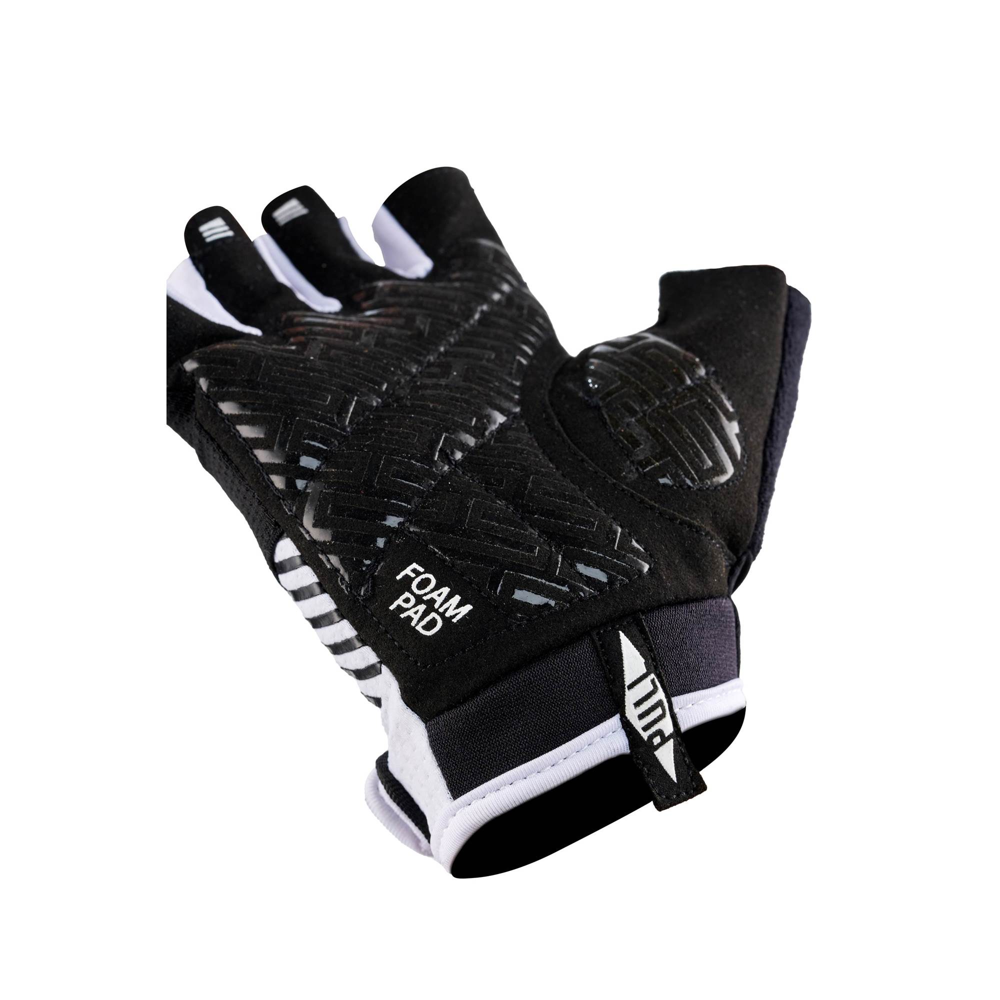 proporciona soporte firme y ajuste seguro. La palma está equipada con gel amortiguador y un grip con diseño especial, pensado para ofrecer un agarre potente y seguro, reduciendo el riesgo de deslizamientos. Esta combinación no solo mejora el control y la estabilidad, sino que